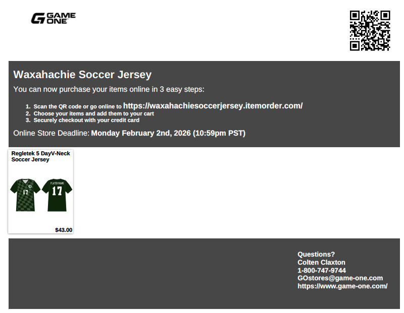 The Waxahachie Boys Soccer Team Store is officially open, and this store is specifically for customized player jerseys that fans can purchase and wear to support the team.
