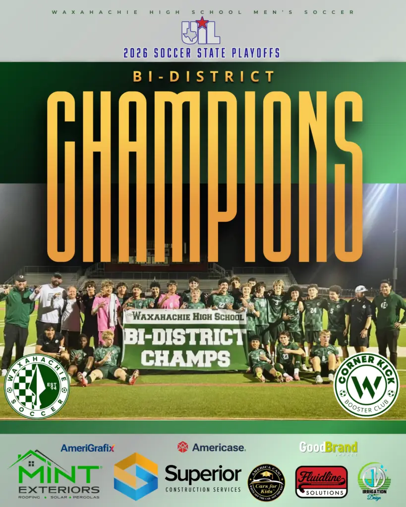 The Waxahachie High School Men’s Soccer team continues its postseason run after securing the UIL Bi-District Championship, advancing to the next round of the Texas UIL State Playoffs.